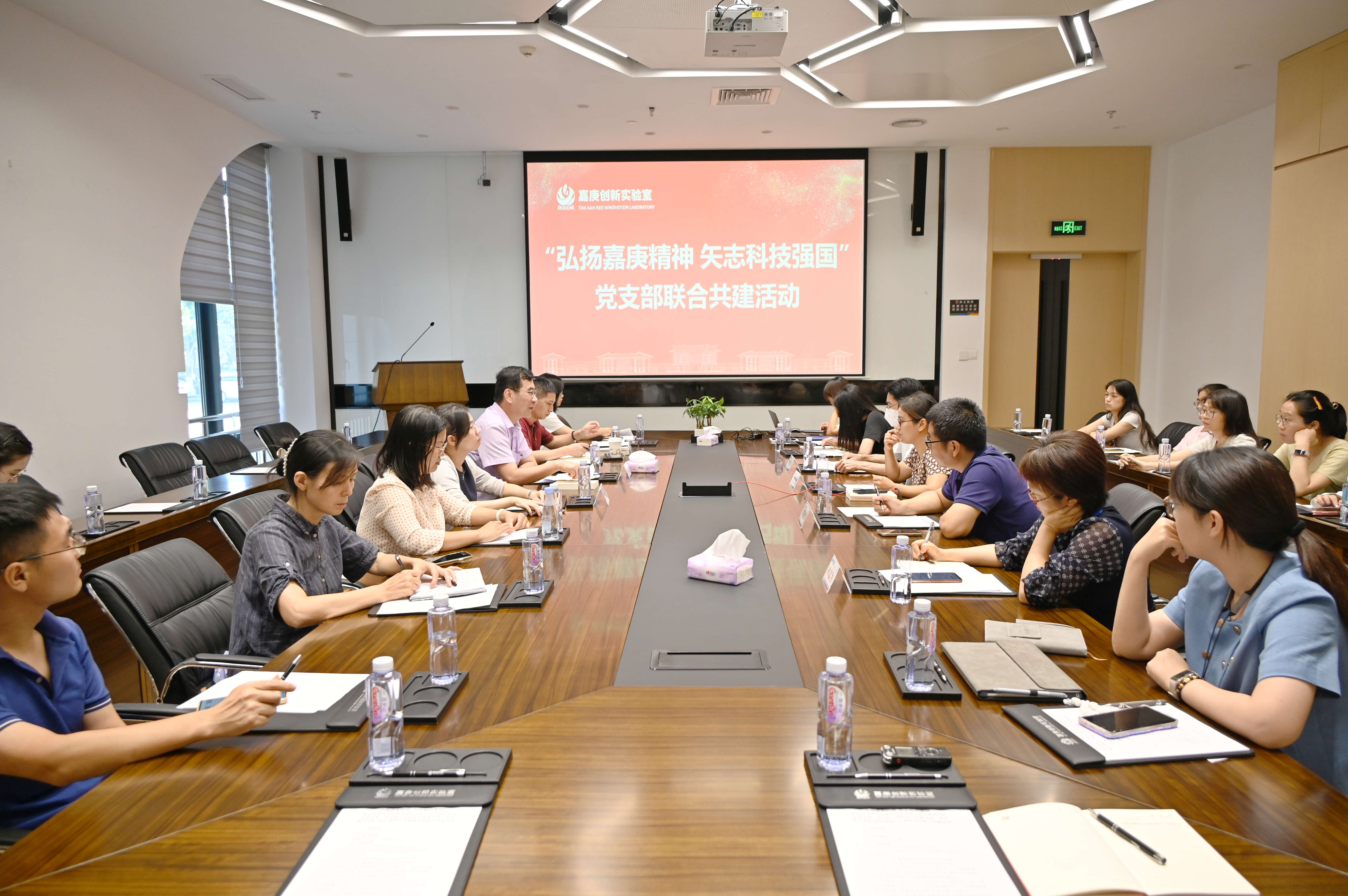为认真贯彻落实党的二十大精神,学习践悟习近平总书记关于科技创新的重要论述,进一步发挥党建引领作用,探索党建工作新思路,6月20日,教育发展基金会秘书处党支部、化学化工学院办公室党支部、嘉庚创新实验室党支部、化学化工学院2022级硕士5班党支部以“弘扬嘉庚精神 矢志科技强国”为主题在翔安校区嘉庚创新实验室开展联学共建活动。教育发展基金会秘书处党支部书记、秘书长曾国斌、副秘书长徐滨,化学化工学院党委副书记刘俊杰,化学化工学院党委委员、固体表面物理化学国家重点实验室副主任林清育,化学化工学院办公室党支部书记黄伟珺,嘉庚创新实验室实验室条件保障部副部长林志为等参加了活动。活动由嘉庚创新实验室主任助理赖日泉主持。