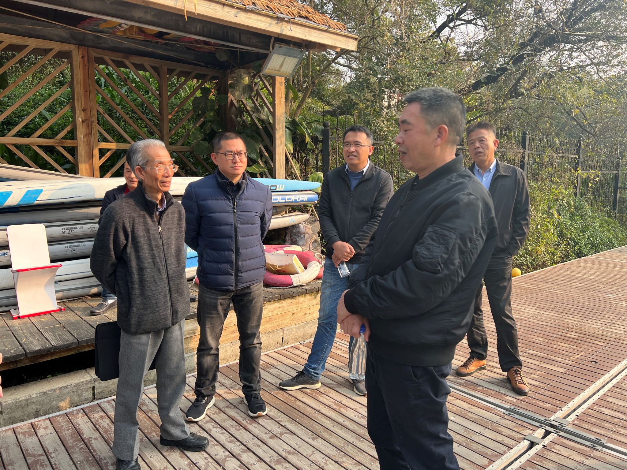 座谈结束后,张莹一行赶赴思明校区思源谷,实地考察了捐赠项目水上运动教学点配套修缮建设进展情况。体育教学部党委书记郑树东、主任林致诚对闽都陈嘉庚公益基金会助力厦门大学体育事业发展表示感谢,并向来访嘉宾一行汇报了教学点配套修缮的详细情况。