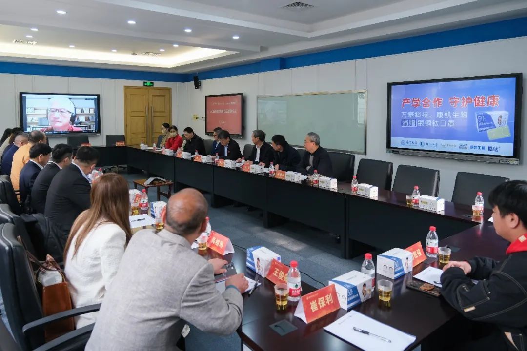 邱七星代表厦门大学向万泰科技和康凯生物两家企业的慷慨捐赠以及辅仁大学谢邦昌副校长的积极促成表示感谢。他表示,当前祖国大陆已进入“乙类乙管”常态化防控阶段,但全球疫情仍在流行,病毒还在不断变异,疫情防控工作还不能松劲,感谢万泰科技和康凯生物联合捐赠的50万片ACT银铜钛医用口罩,助力厦大继续做好疫情防控工作。