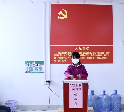 3月9日下午,一位不愿透露姓名的学校教工带着8岁的女儿来到了专款募捐牵头组织单位校工会的办公室,小朋友在父亲的陪伴下,站在“守望相助 共克时艰”捐款箱前,捐出了属于自己的一份“心意”。小朋友说,虽然她每天宅在家,但她读到了一首诗——《谁最美》,诗中写道“我们命运相连,我们息息相通;我们共克时艰,我们众志成城……”她希望为武汉战“疫”一线的叔叔阿姨们做一些力所能及的事情。