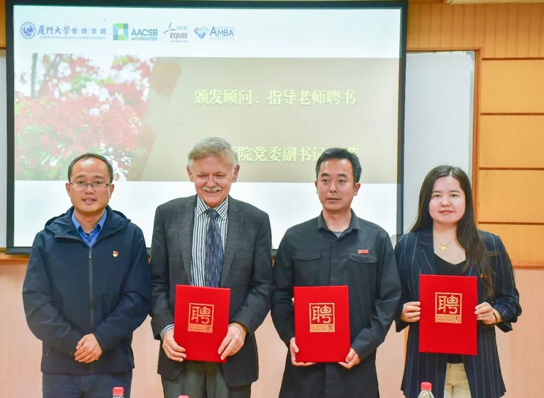 接着,蒋超杰介绍并宣布学院石榴籽计划启动。为贯彻落实党的二十大精神,管理学院石榴籽计划以“铸牢中华民族共同体意识”为主线构筑中华民族共有精神家园,促进各民族交往交流交融。石榴籽计划聘请潘维廉教授担任顾问,厦门大学少数民族专职辅导员米日姑•亚森、管理学院团委副书记揭上锋担任指导老师。戴蓥为潘维廉、米日姑•亚森、揭上锋分别颁发顾问、指导老师聘书。