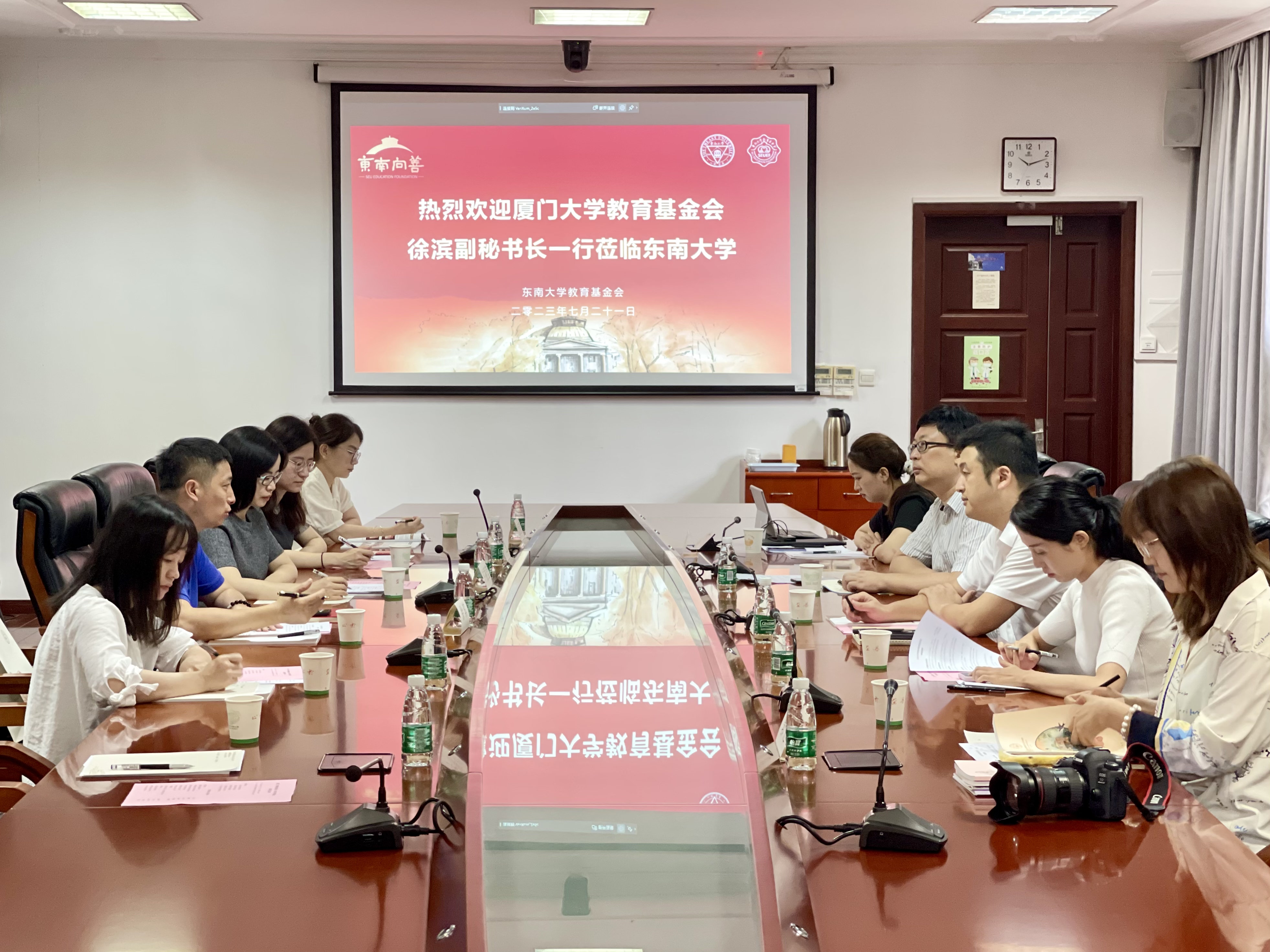 7月21日,为有效推进学习贯彻习近平新时代中国特色社会主义思想主题教育走深走实,扎实开展调查研究,提升基金会工作水平,加强高校间互动交流,教育发展基金会副秘书长徐滨率队赴东南大学调研交流。