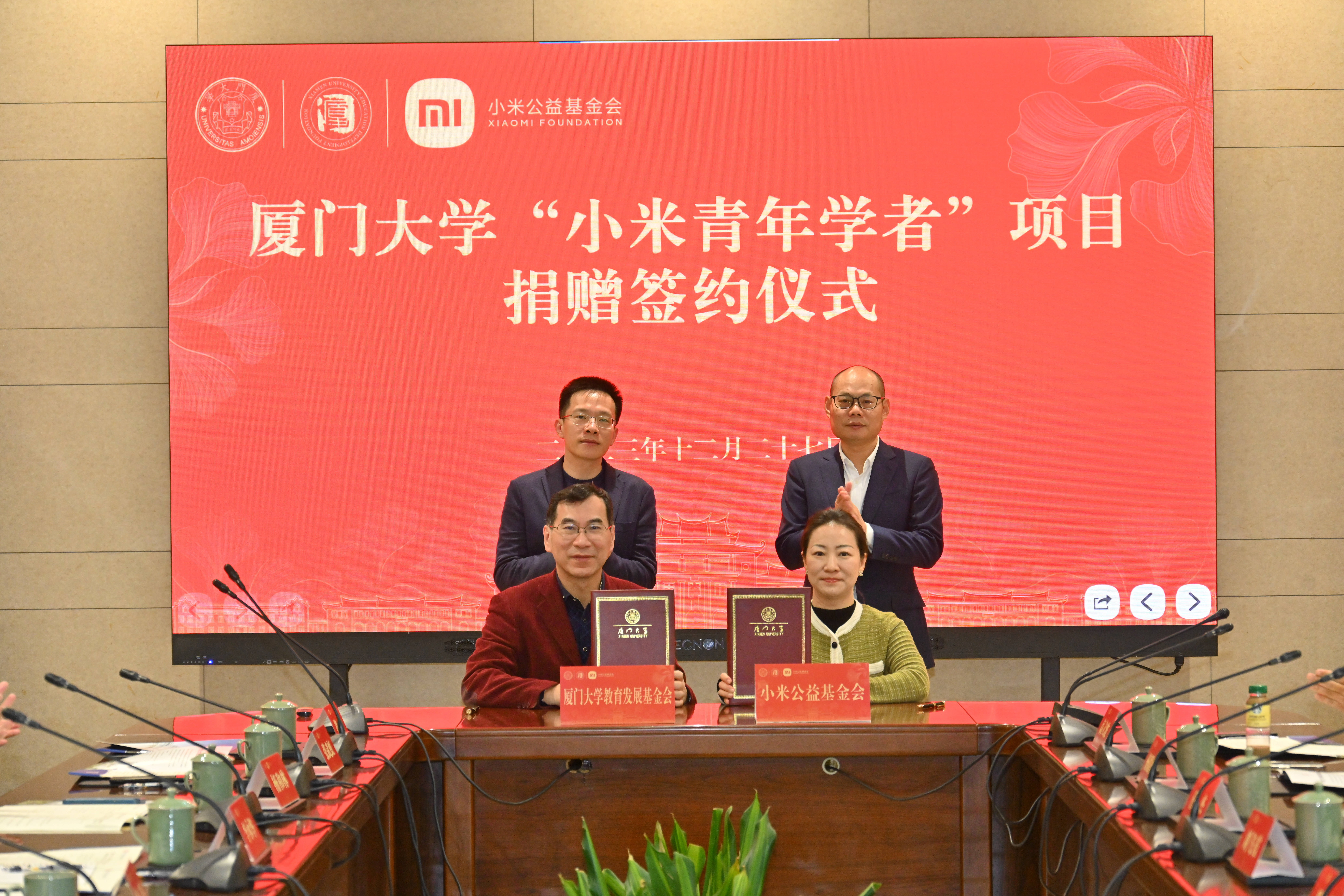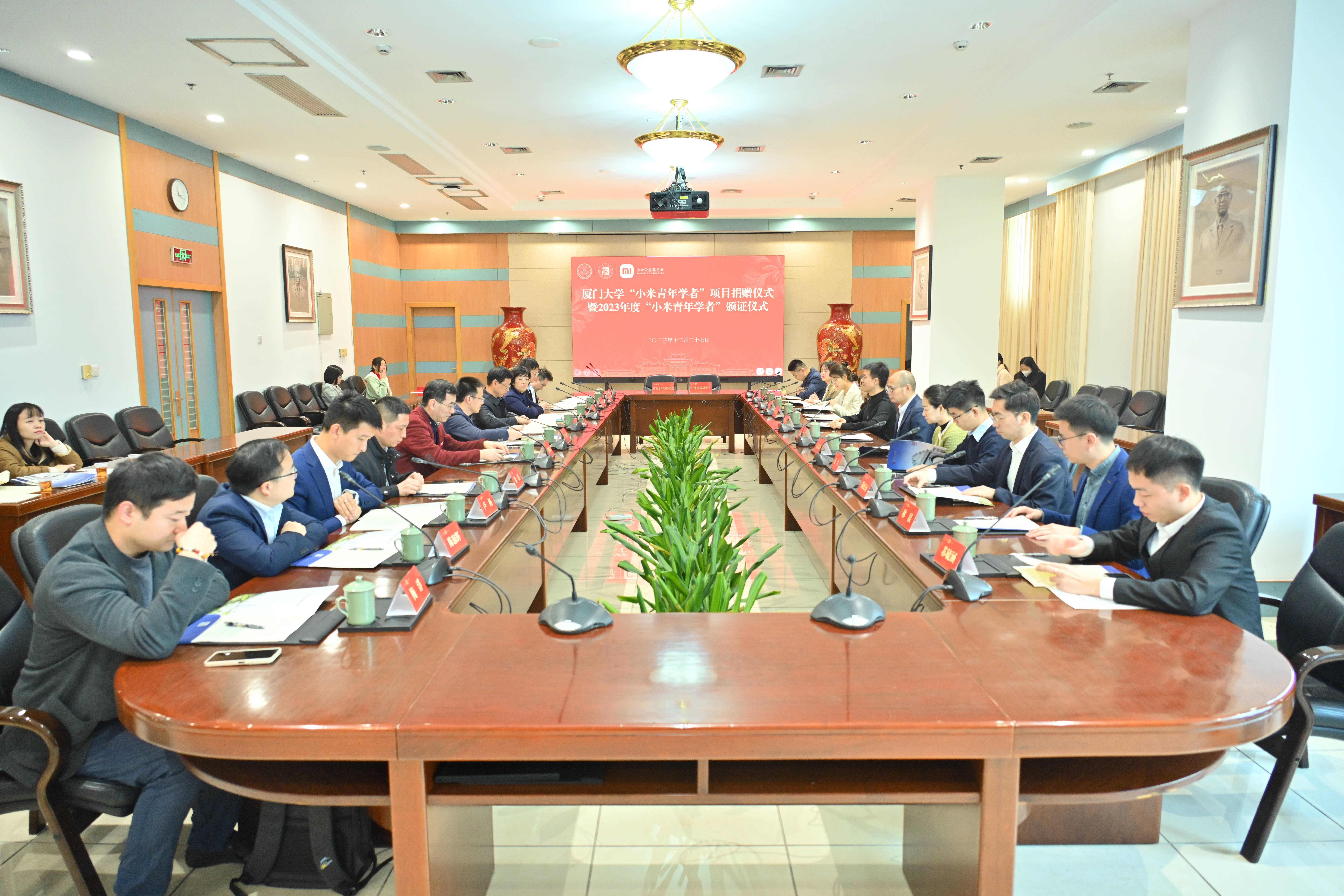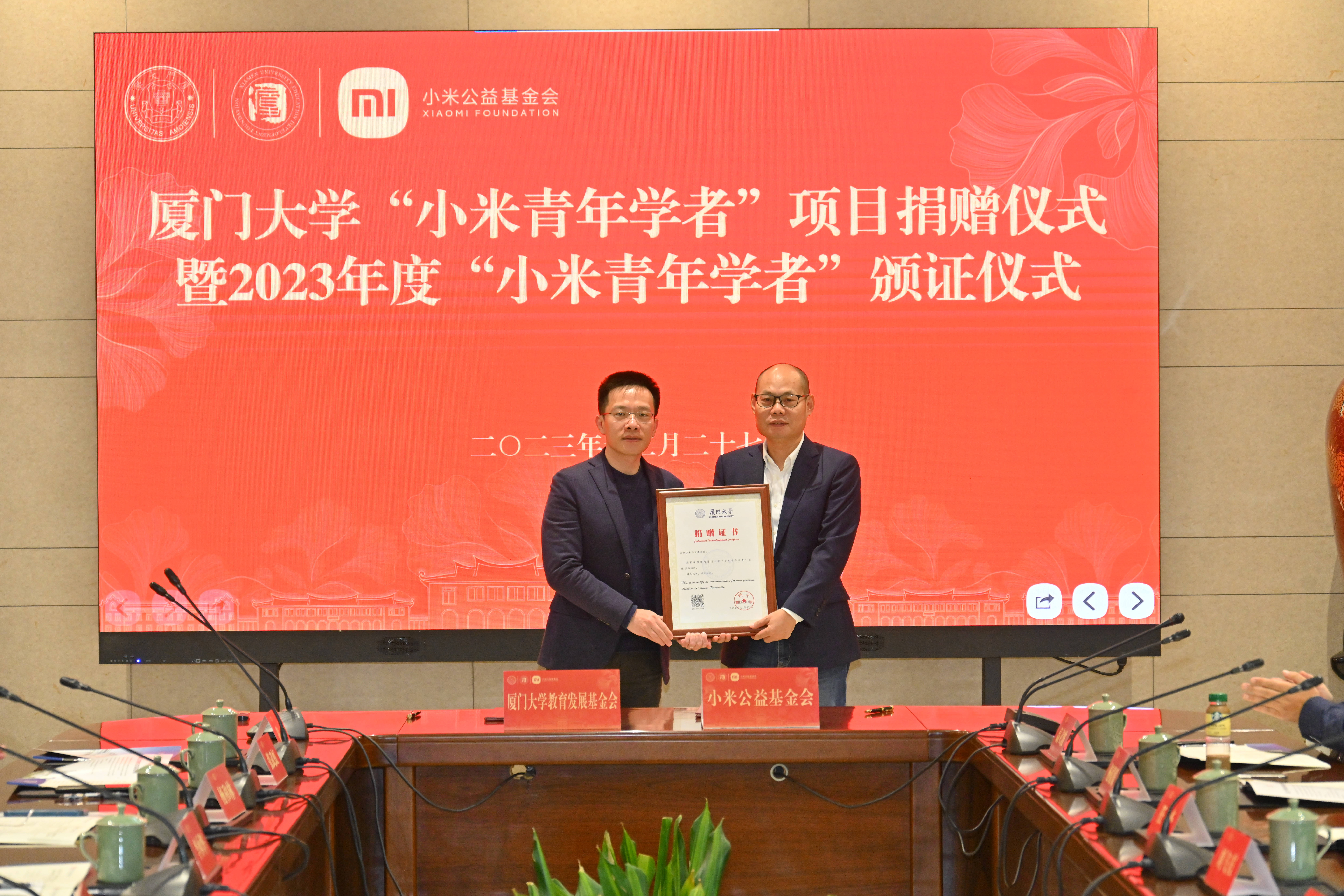 12月27日,厦门大学“小米青年学者”项目捐赠仪式暨2023年度“小米青年学者”颁证仪式在颂恩楼215会议室举行。小米集团副总裁兼手机智能制造部总经理颜克胜,小米公益基金会副秘书长高文隽,厦门大学副校长史大林、教育发展基金会秘书长曾国斌以及学校相关职能部门和院系教师代表出席仪式。仪式由厦门大学人事处处长李军主持。