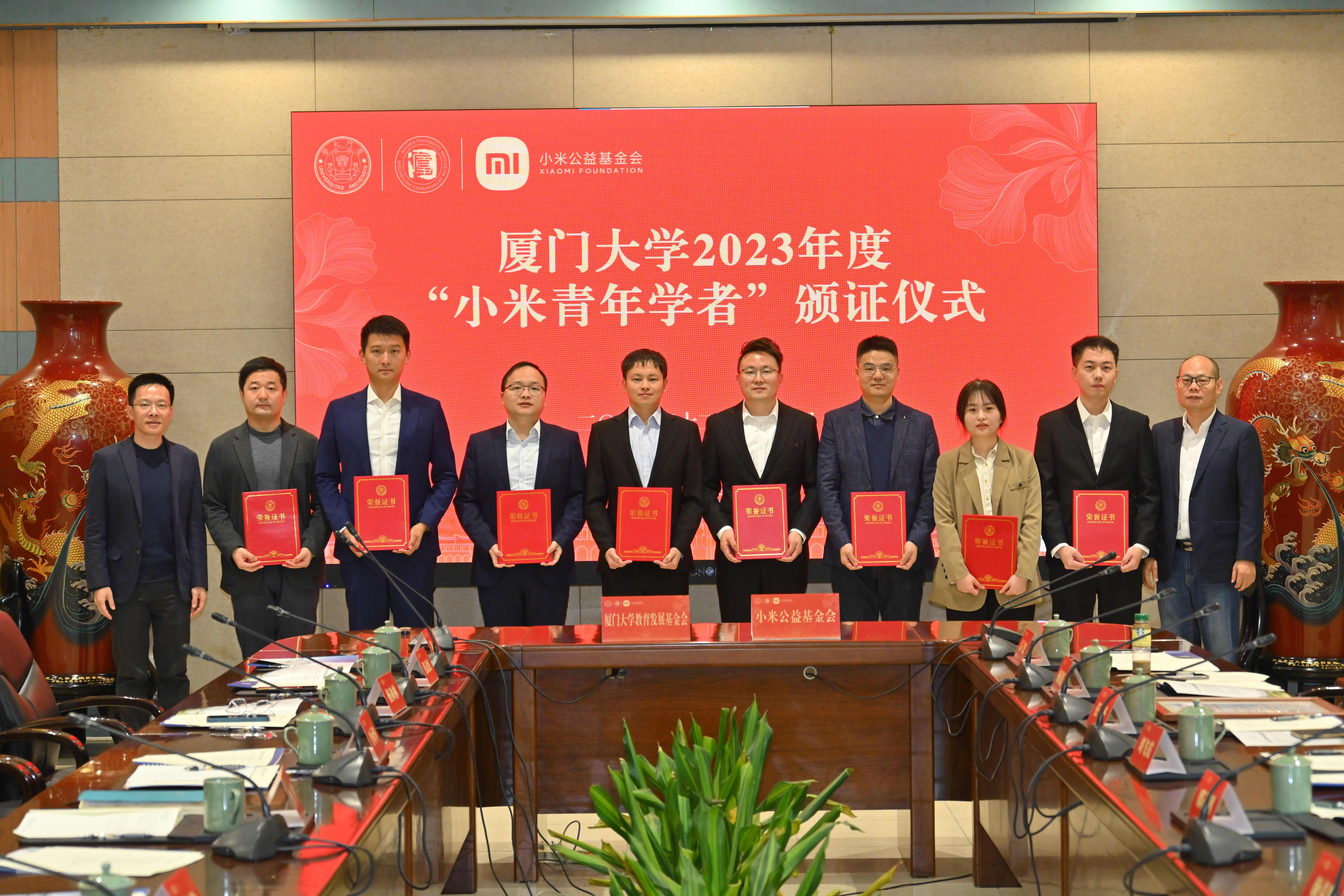 活动期间还举行了厦门大学2023年度“小米青年学者”颁证仪式,史大林与颜克胜向获奖的青年教师颁发证书。此前,厦门大学副校长江云宝、评审专家组成员共同参与了学校“小米青年学者”评审会。经专家组评选和校内公示,最终确定数学科学学院黄文等10人为2023年度厦门大学“小米青年学者”项目获奖人选。