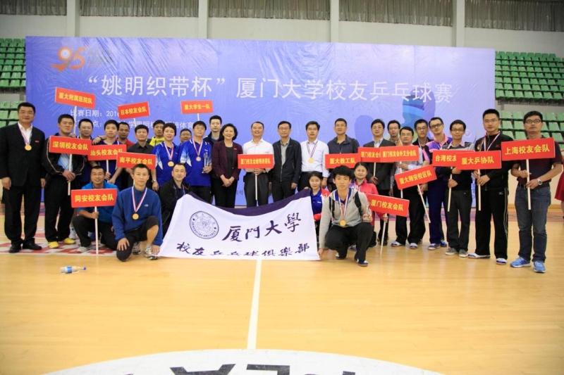 4月7日,我校95周年校庆系列活动,“姚明织带杯”厦门大学校友乒乓球赛在我校思明校区明培体育馆举行。由校友、师生组成的20支队伍参加比赛。校党委书记张彦出席开球仪式。副校长詹心丽,材料学院院长、厦大乒乓球协会会长刘兴军,厦门校友会会长姚明,厦门市乒乓球协会常务副会长温哲先后致辞。开球仪式由厦门大学校友总会秘书长曾国斌主持。