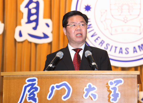 校长朱崇实在大会上发表讲话。他代表学校向全校师生员工、广大海内外校友致以节日的问候和美好的祝愿,向长期以来关心、支持和帮助厦门大学发展的社会各界朋友表示崇高的敬意和衷心的感谢。
