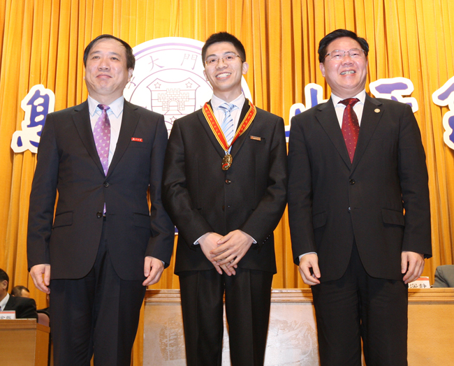 副校长邬大光宣读2014年度各项奖教金、嘉庚奖章、各项奖学金的获得者名单。获得南强杰出贡献奖的是田昭武院士、唐崇惕院士、邓子基教授、潘懋元教授,学校对《长征组歌》赴新马交流演出团、厦门大学中国国际太阳能十项全能竞赛代表团、雏凤团队、化学化工学院2010级博士生朱从青给予通令嘉奖,其中,朱从青获得嘉庚奖章。