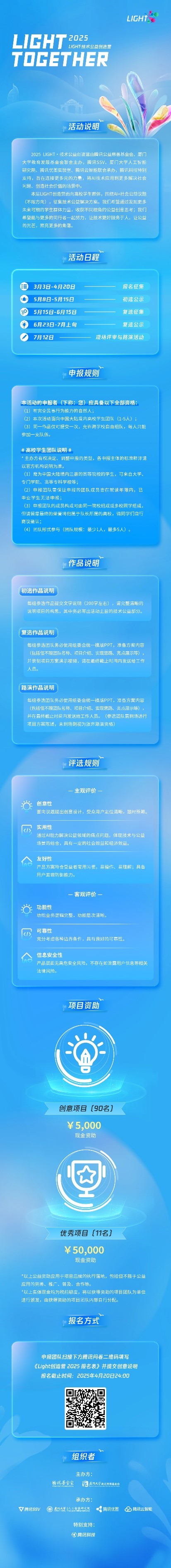 2025 Light 技术公益创造营将于4月20日结束征集,届时来自内地高校的优秀技术公益案例将陆续亮相,共同开启社会公益的崭新篇章。未来,在科技赋能公益的新时代背景下,腾讯公益慈善基金会与厦门大学教育发展基金会将继续携手共进,用科技的力量温暖更多人,用公益的精神激励更多人,共同书写更加美好的未来。