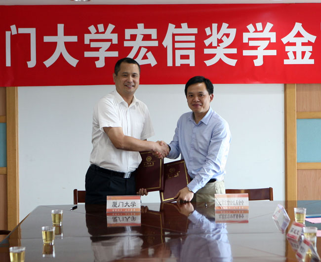 6月12日下午,宏信奖学金签约仪式在我校举行,校党委副书记林东伟,北京宏信公益基金会代表、远东宏信有限公司人力资源部总监陶祁分别讲话并代表双方签约。