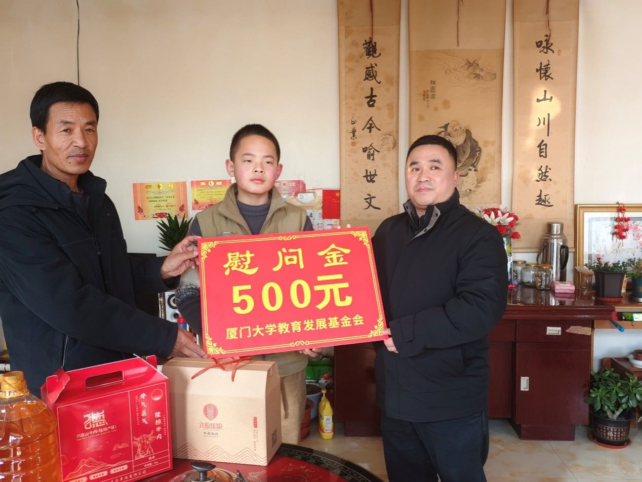 近年来,厦门大学教育发展基金会主动参与闽宁协作伟大事业,设立“山海偕行,冬日暖心”项目,鼓励引导广大有意愿、有能力的社会组织、企业、校友和爱心人士积极参与隆德县特殊困难群众、困难学生关爱帮扶,为特殊困难群体送去温暖。2025年春节前夕,在“山海偕行,冬日暖心”项目的支持下,隆德县委常委、县政府副县长、我校挂职干部陈国渊前往慰问隆德县的困难群众和孤儿并发放慰问金,表达了厦门大学对当地困难群体的深切关怀和新春祝福,进一步增强了校地之间的深厚情谊。