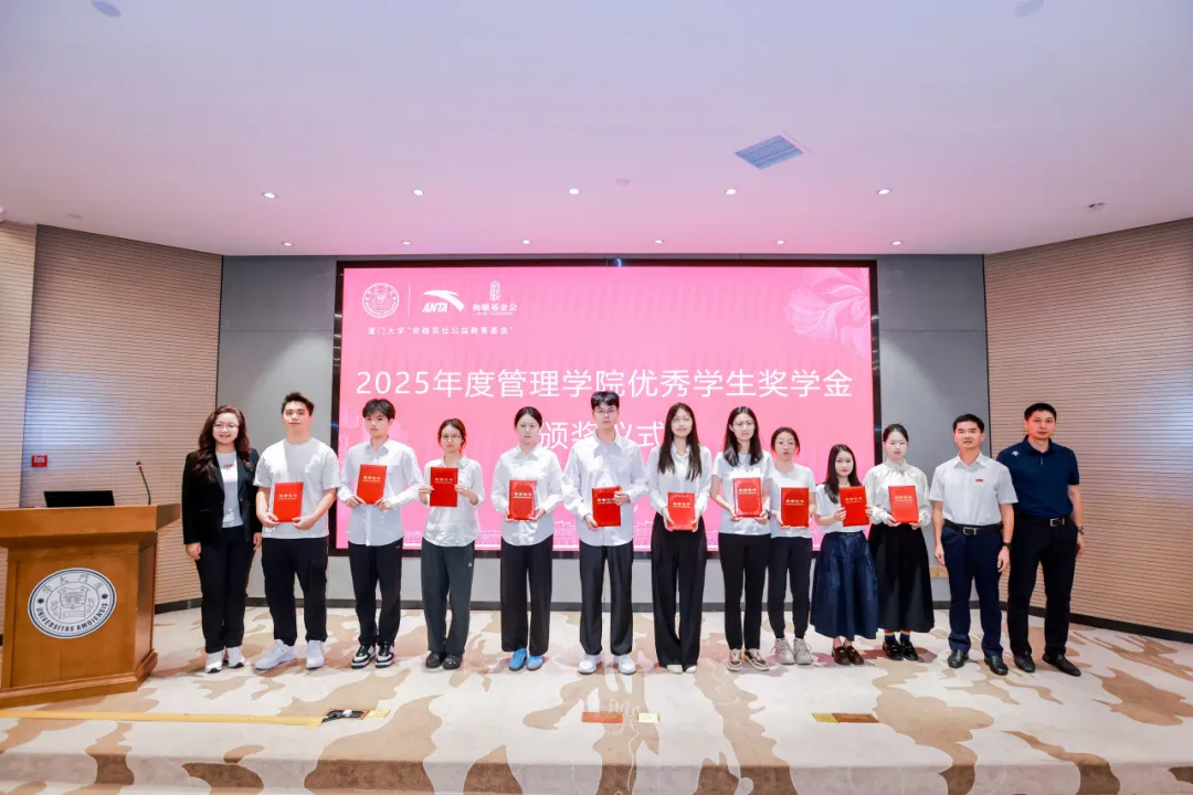 2025年7月3日上午,厦门大学“安踏茁壮公益教育基金”财经金融优秀学生奖学金颁奖仪式在克立楼三楼报告厅举行。安踏集团副总裁李玲,厦门大学教育发展基金会秘书长赵晓慧、副秘书长徐滨,管理学院党委书记张明智、党委副书记郑碧娇,经济学院党委副书记李静,以及经管两院获奖学生代表出席仪式。仪式由管理学院团委书记刘茜主持。