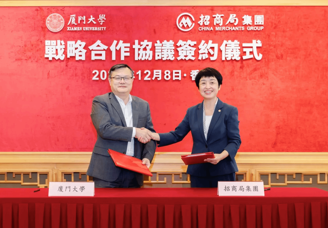 代表团访问招商局集团,双方围绕联合开展关键技术研发与创新、共建高水平科技创新平台、推动科技成果转化落地、实施有针对性的专项人才培养与培训、共建学生实践实习与创新创业基地等议题开展座谈交流。张荣、招商局集团总经理石岱共同签署《招商局集团有限公司与厦门大学战略合作协议》。未来,双方将在科技创新产业、高层次人才培养、校区与园区协同建设、综合金融与专业化服务等领域开展全方位战略合作,协同融入国家重大战略布局。