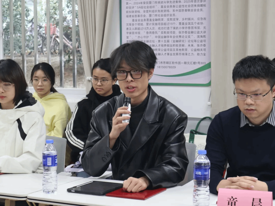 颁奖仪式后,经济学院金融系、王亚南经济研究院双聘副教授童晨,经济学院2023级本科生张钰聪作为获奖师生代表发言,表达对张亦春基金教育发展基金会的感谢,并表示将以此为起点,再接再厉、笃行奋进。