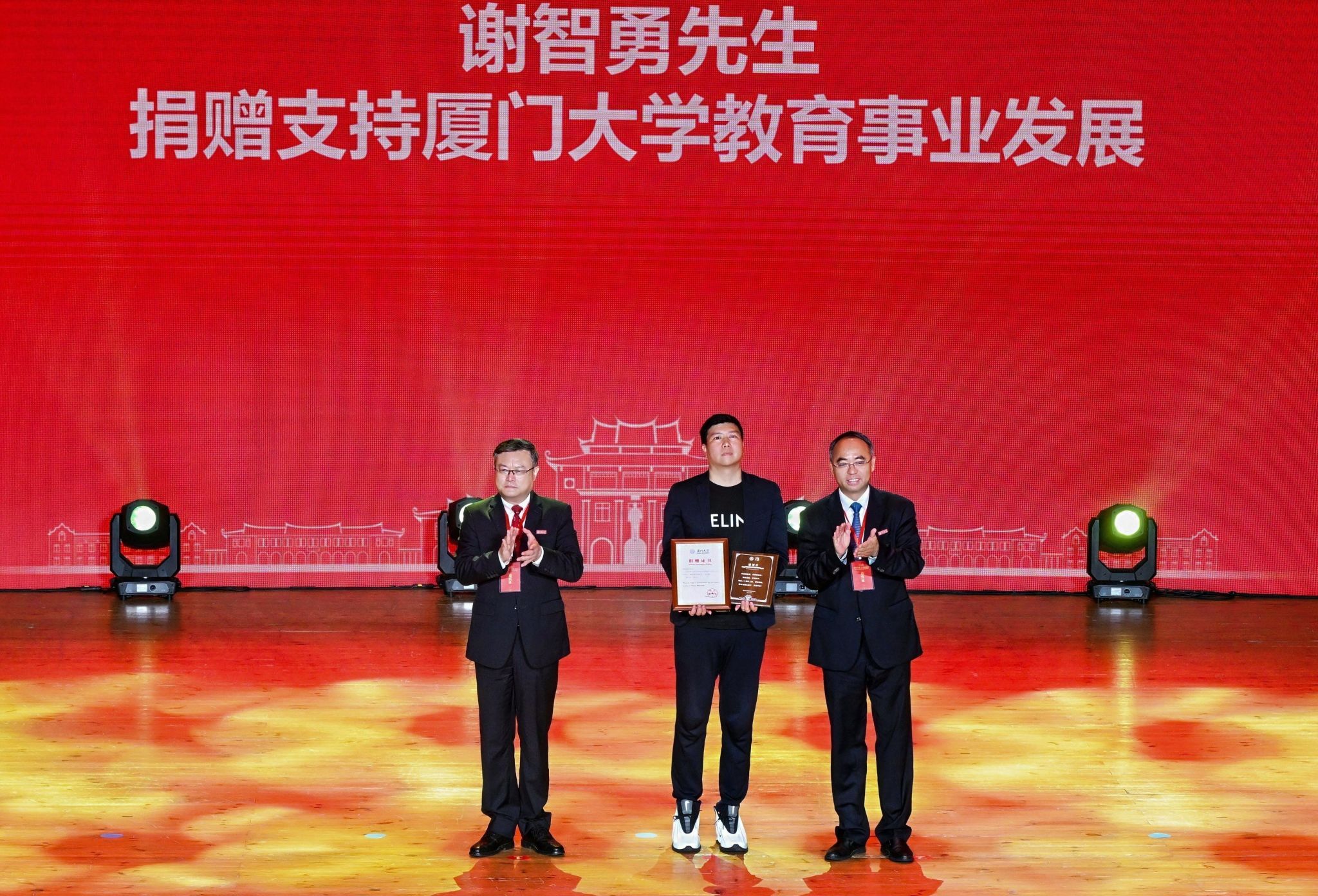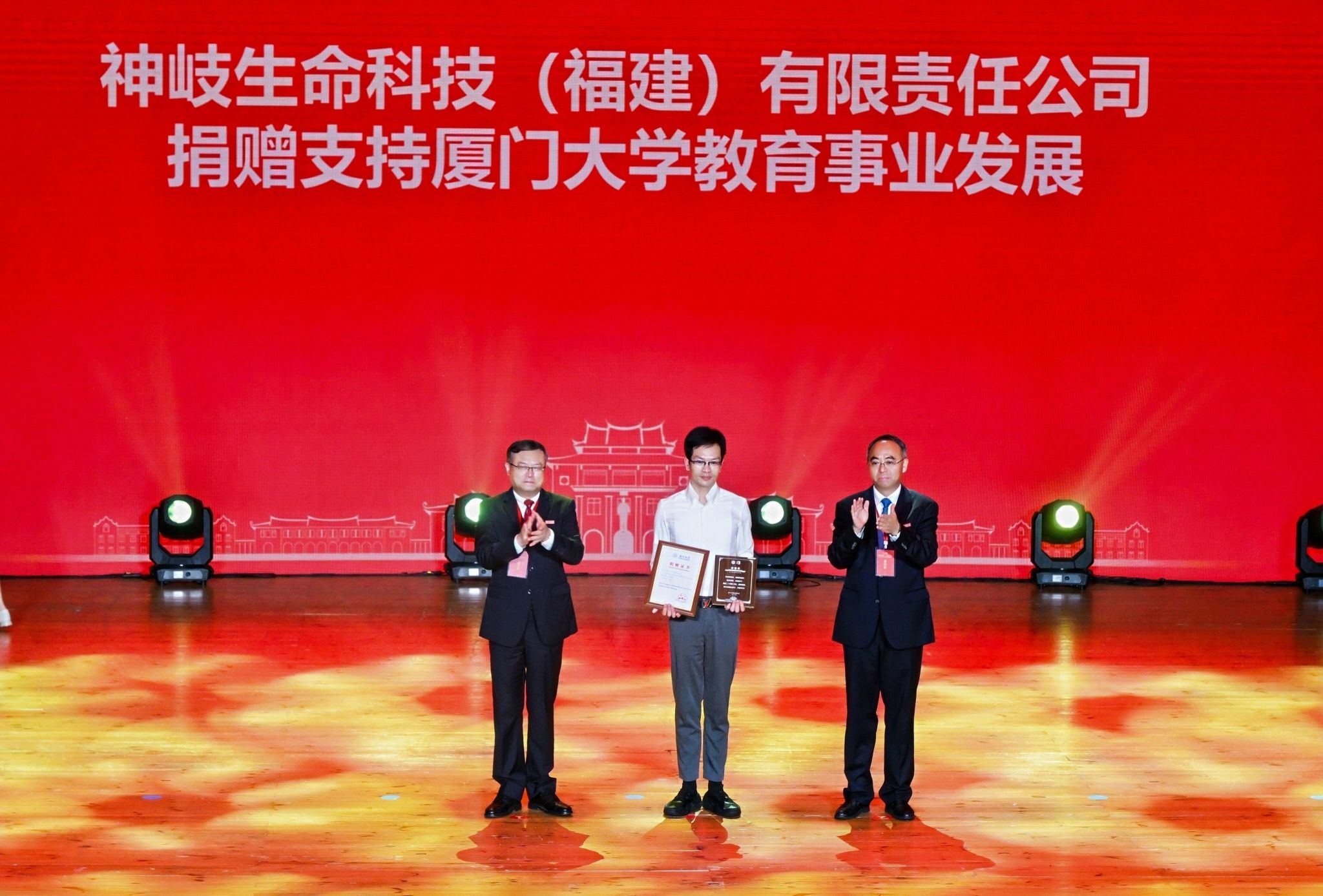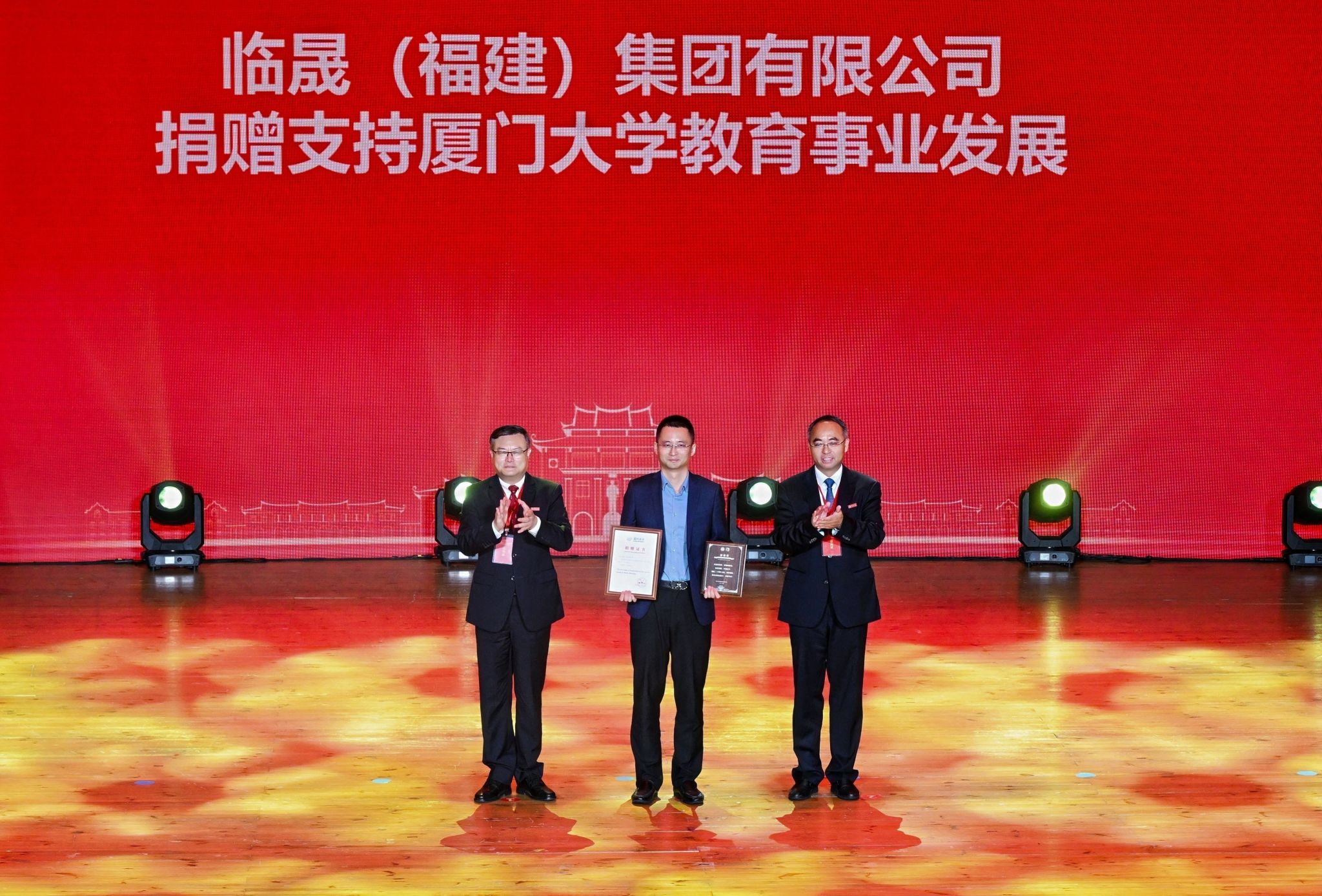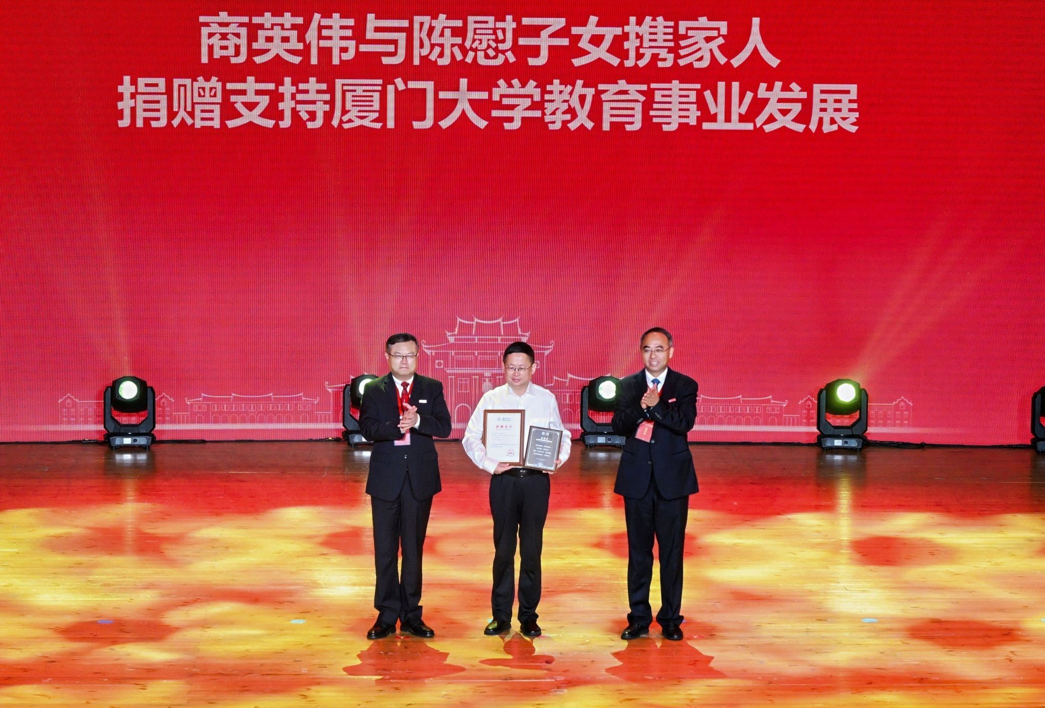 南强聚爱践初心,感恩同行育新人。4月6日,在厦门大学迎来建校105周年、教育发展基金会成立20周年之际,以“南强聚爱·感恩同行”为主题的感恩答谢活动在思明校区科学艺术中心二楼音乐厅举行。活动以弘扬嘉庚精神为主线,聚焦捐赠育人主题,将社会捐赠与立德树人深度融合,展现社会各界爱心力量与学校同心筑梦、协同育人的生动实践,进一步凝聚海内外校友、社会贤达与学校同向同行、共筑一流的强大合力。教育发展基金会理事长、校党委书记、中国科学院院士张荣,校长、中国科学院院士胡文平出席,校党委副书记孙理宣读颁奖决定,校党委常委、副校长李智勇主持捐赠仪式,海内外校友代表、社会各界嘉宾、基金会历届理监事代表及学校师生代表出席活动。