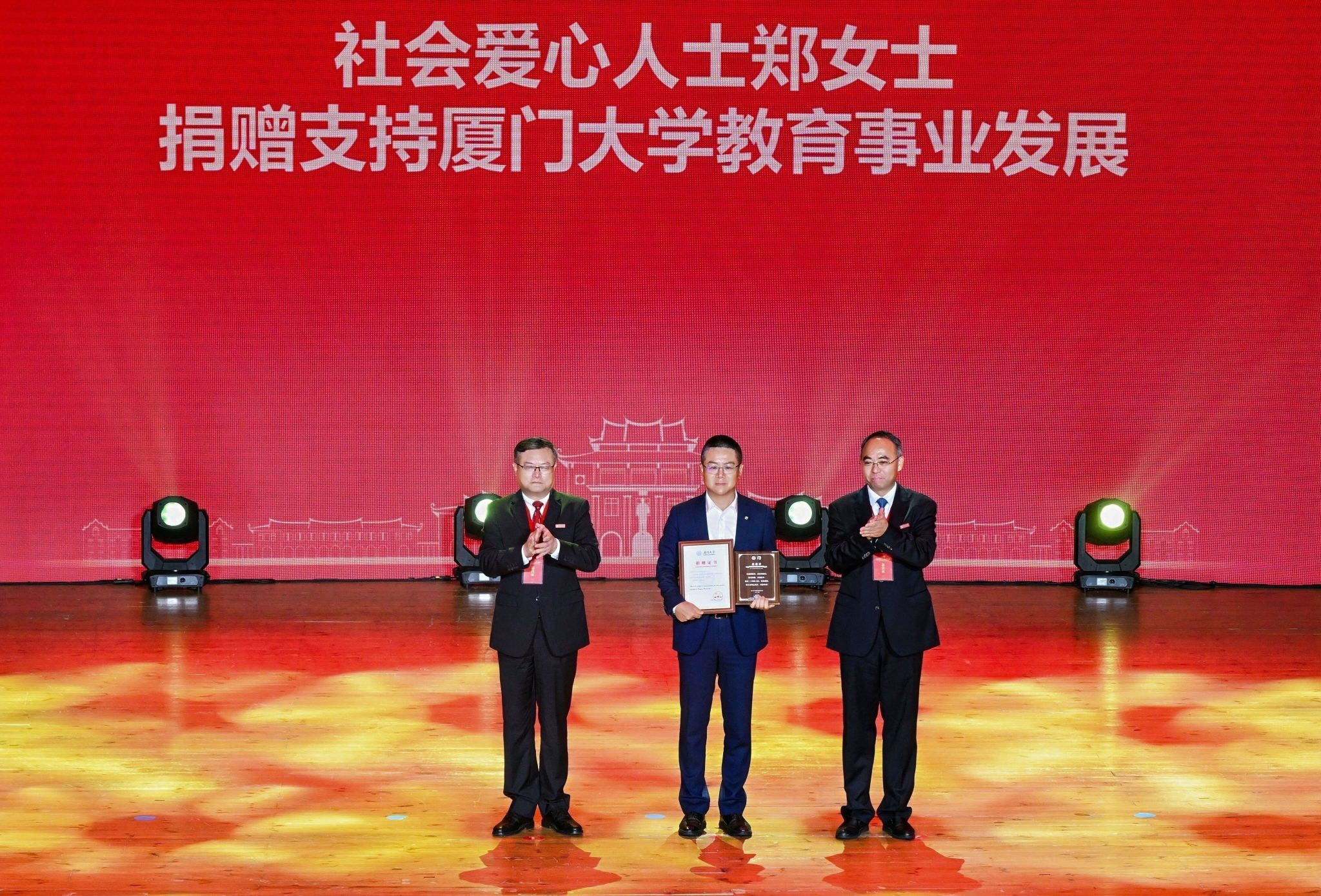 活动举行了朴素而庄重的捐赠仪式。张荣书记和胡文平校长逐一为到场的捐赠方代表致送捐赠证书和感谢铭牌,表达对各界长期以来支持厦门大学发展建设的诚挚谢意。这些社会各界的爱心捐赠,将持续赋能我校“双一流”建设,为教育强国建设贡献力量。