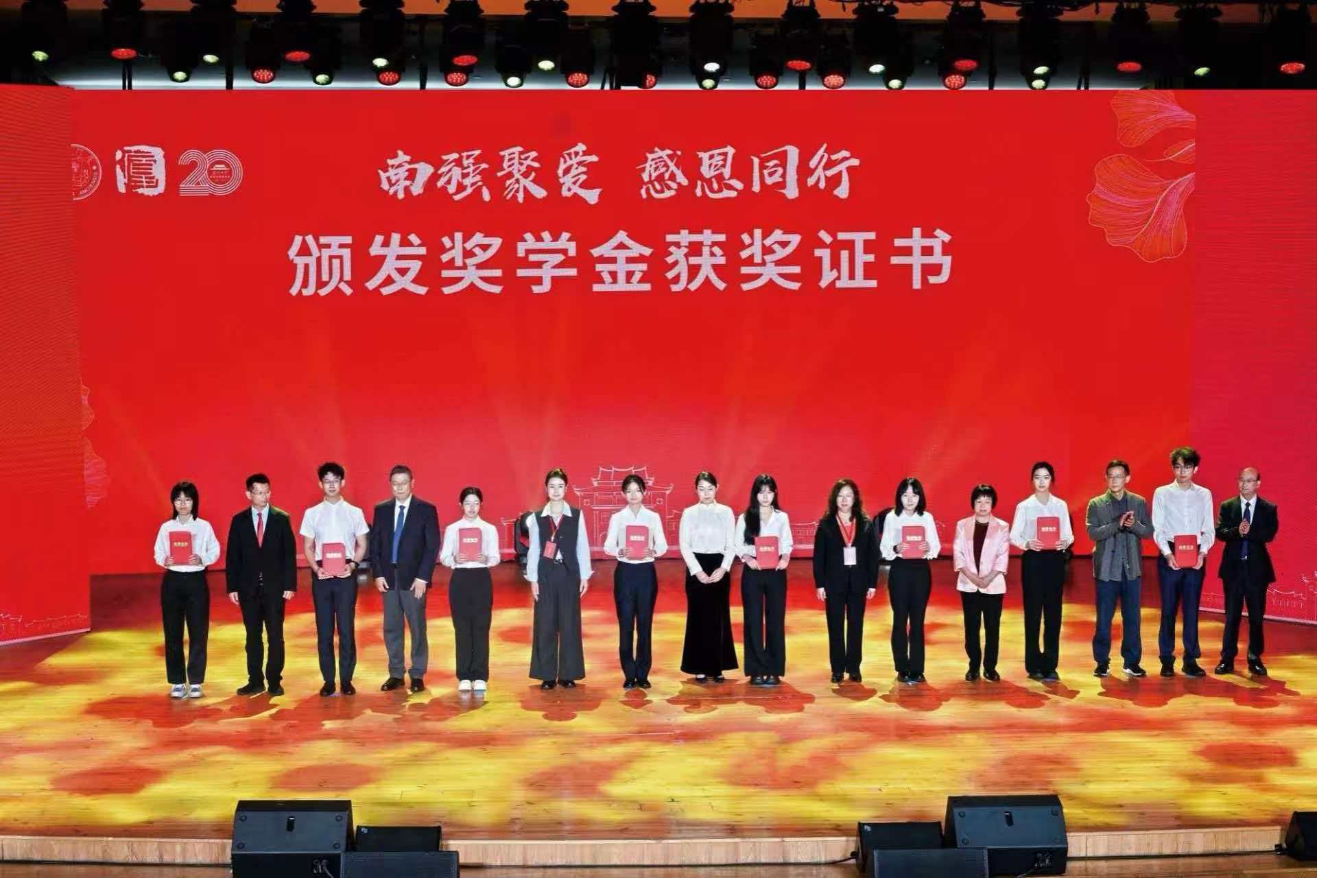 活动现场还举行了社会捐赠类校级奖学金奖教金颁奖仪式。部分设奖方代表上台为获奖师生颁发获奖证书,以表彰激励传递育人温度,持续巩固“捐赠—奖助—成才—反哺”的良性育人生态。
